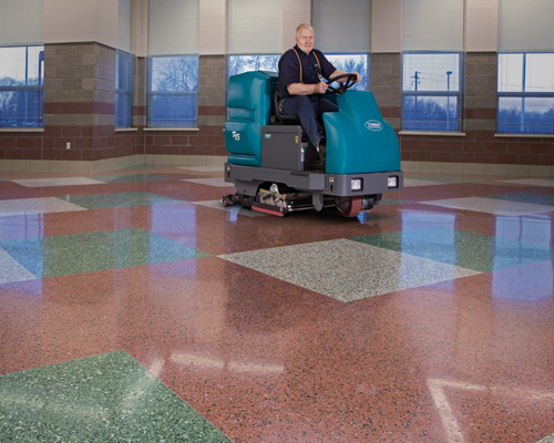 Restregadora de 36" cilíndrica con sistema FaST con batería accionada, con un sistema de cepillo que barre al mismo tiempo que se friega.