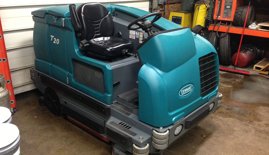 El sistema de lavado de Tennant T20 utilizado entrega 390 libras de presión hacia abajo y 480 rpm para los cepillos.